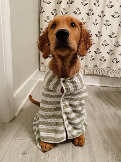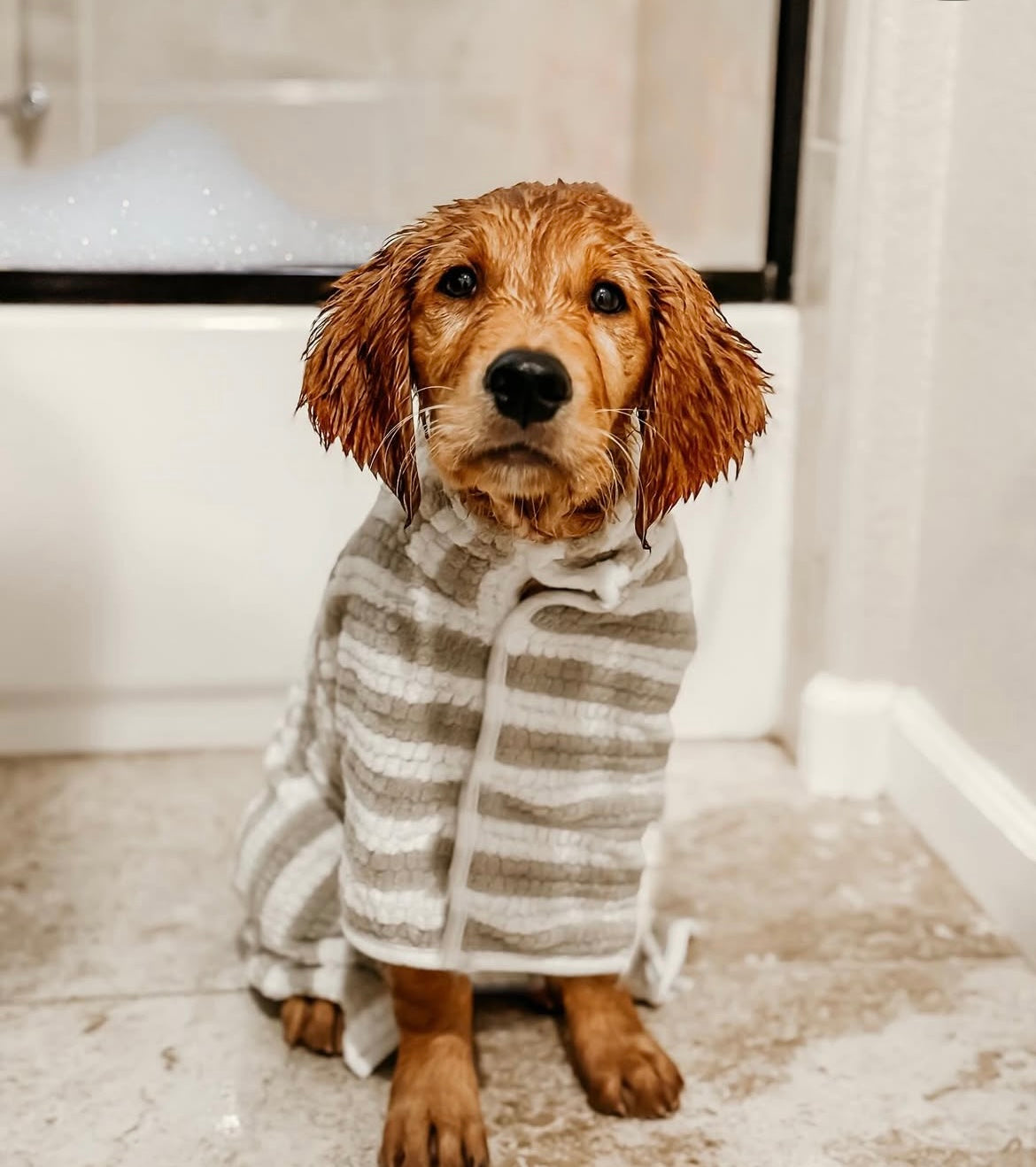 This pet bath towel soaks up water fast, reducing drying time for your dog. Soft, thick, and gentle—ideal for all breeds after bath time!